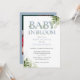 Baby In Bloom Dammig blå blad Foto Bebis Shower Inbjudningar