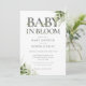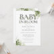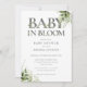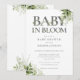 Baby in bloom baby shower inbjudan med elegant typografi och vacker botanisk grönska. Designad av Thisisnotme