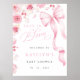 A beautiful Baby in Bloom welcome sign featuring soft blush pink tones, elegant watercolor florals, and a delicate pink bow.