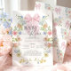 Fira en ny och söt ankomst med denna charmiga ”Baby in Bloom” inbjudan till baby shower, med ömtåliga vattenfärgblommor och en mjuk, romantisk design. Ett vackert illustrerat rosa band ligger i mitten, omgivet av rosafärgade, pastellfärgade och luftiga trädgårdsblommor för en elegant och feminin look. Kombinationen av modern typografi och flytande skrivstil ger en tidlös touch som känns både klassisk och trendig.