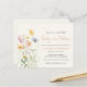 En elegant prisvärd ljusbeige baby shower inbjudan för flicka som har "there's a sweet little baby in bloom" skriven i modern mjuk grå typografi och en chic persiko skript, och en boho-inspirerad akvarellbukett med små lila, rosa, persiko och blå vilda blommor.