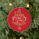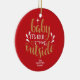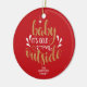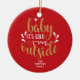 Jul keramisk prydnad med frasen "Baby It's cold outside", i en elegant guld och vit manus text på röd bakgrund. Du kan anpassa med ditt familjenamn. Hjälper till att lysa upp din högtidsdekor. En perfekt present som juldekoration!