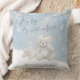 Cozy up your space with this charming accent pillow from the "Baby, It's Cold Outside" collection. Featuring a gentle, soft teddy bear nestled next to tiny baby boots in a snowy, serene landscape, the design is framed by delicate, elegant snowflakes. The tranquil blue and white color scheme provides a gender-neutral and timeless touch, perfect for a nursery, reading nook, or as a thoughtful gift for an expecting family celebrating a winter arrival.