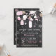 Baby it's Cold Outside Vinter Mason Jar Baby Shower Inbjudan. Pojke eller flicka Baby Shower Inbjudan. Rosa och vita snöflingor. Masonburk. Blommor. Strängljus. Kritskriftsbakgrund. Svart och vit. För ytterligare anpassning, klicka på "Anpassa"-knappen och använd vårt designverktyg för att ändra denna mall.