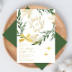 These modern and rustic baby shower invitations are perfect for cosy winter showers. Warm and stylish, they feature hand-painted rustic botanical wreath made of green eucalyptus branches. faux-gold pine branches, tied with a bow. The custom text containing all your party information, is below in classic typography with a name of mom-to-be in elegant handwriting. The same sript is used for a title: baby, it's cosy inside which is a cute and playful paraphrase of a popular theme: baby, it's cold outside. The text in warm toffee color on a snow white background, is accompanied by sof gold starry sparcles. The reverse contrasts beautifuly with a deep green color of the greenery. Create your own by changing the text to your own information! Perfect for gender neutral schowers, baby girl and baby boy.