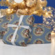 Denna traditionella julklapp har en fantasibild av baby Jesus som sover i en manger med Mary och Joseph i mitten. Nativiteten omges av en andedräkt med vita bär. Bakgrunden har en samordnande blå färg.