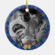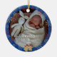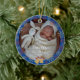 Den första julbanderollen och gräns-fotodesignen av prydnadsföremål kan vara personlig med pojke namn och födelseår. Innehåller ett andra foto på baksidan. Baby första julfoto med snöflinga.