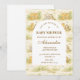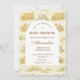A sweet storybook-style safari design featuring gentle watercolor baby animals including lions, giraffes, and elephants surrounded by soft jungle greenery and a delicate botanical background. The warm neutral palette of cream, honey gold, and soft olive creates a timeless nature-inspired aesthetic, while the elegant arched layout provides a beautiful space for event details.