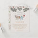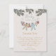 Det könsneutrala vinterbesökaren för babykläder Tack-kortet ger en söt, handritad illustration av pajamabakkostymer och plysdjur som hänger på en garderollinemi i grenar på vintern gräs. Baksidan har en söt mönster av pajamabytar, plusdjur, baby flaskor, biber, nappar, presenter och små gulter. Anpassadet tackar er och namn. Elegantens elfenbensbakgrund.
