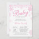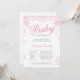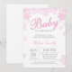 Baby dess Kall utanför Winter Baby Shower-inbjudan. Rosa och vitlök.Flickbarnskussinbjudan. Winter Helgdag Baby Shower Inbjudan. Vit bakgrund.