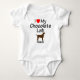 Den här anpassningsbarna "I Kärlek My Chocolate Lab"-utrustning i baby är perfekt för alla baby som kärlek har en chokladlab-hund, lägg bara till hund namn.