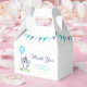 These cute birthday party favor boxes feature a cute baby koala wearing a party hat and holding a balloon with party flags decoration.
