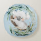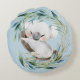 En björn sömnig baby koala är i centrum av en blå grönt och guld eucalyptus-andedräkt på denna ökända yngelkudde. Vid grund står baby namn svart. Bilden och texten placeras på en ljusblå bakgrund. Baksidan av kudden har samma bild utan texten. Det här är en söt och användbar babyduschpresent!