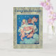 Mycket söt vintage bild från baby änglar som tar med sig nyfödd bebis från himlen. Tillägget snöre gräns och bakgrunden gör detta till ett verkligt unikt, könsneutralt, grattis kort för nya föräldrar.