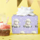 Cute lamm på vitt polka dots med baksida av pastellbaserad lila