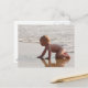Baby leker i sand på stranden vykort