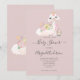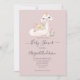 Vit baby llama med rosa blommor på den här babyduschinbjudan. Se vår motsvarande insamling av produkter från party och baby.