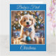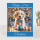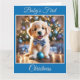 En underbar julscen med en söt Golden Retriever-valp som konstigt nog beundrar Juldekorationer. Lägg till egen personlig.