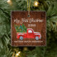 Modern penselskript Min första julprydnad i Baby Första julklapp omfattar Vintage Röda Lastbil med Julgranar, Ljus, Snö och Julklapp. Rustic Land Wood Print. Snö Gräns.
