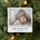 Baby Mitt första julfoto Modern Script Namn Julgransprydnad Keramik