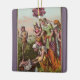vintagemålningillustration av bebiset moses som är fastställd på drift på en flod och finner av en dam och henne följen amongst flodväxterna.