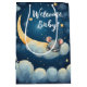 Cute grått-möss sover i ett moln med ett halvmåns måne på ett mörk blått himlar.