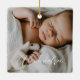 Meddela och välkomna er nyfödd bebis ankomst med vårt enkla och moderna födelsemeddelande i baby som fortfarande är ornament. Den enkla och elegant utformningen visningar på ett vackert sätt baby Namn i manuset, födelsedatum, födelsetid och födelsestatus. Bakgrunden färg kan enkelt ändras till kostym genom att klicka på detaljer och redigera med Zazzles design verktyg. Lägg till ditt baby-foto på baksidan av ornament. Design efter moodthologipapper