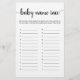 Köp detta spel och njut av högkvalitativa Baby Namn Kapplöpning kort för ditt evenemang! Könsneutral Svart och Vit design.