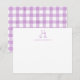 Baby Note Card, Purple Teddy Bear Gingham Flat Anteckningskort