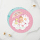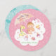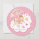 Att ha en babystölder för en familjemedlem eller vän. Det här söta, Spara datumkortet är ett underbart sätt att påminna gästerna om pennan på datumet. Designat för ett flicka är söt-kortet i pastellskugga av rosa med beröring av lera, citron och grönt. Under ett paraply sitter ett sött flicka på ett vitt fluffmoln. Hon är omgiven av baby och en citron leksak giraffe. Molnet ställs in mot en rosa bakgrund med små regndroppar. Kortets baksida är turkos och har även en mönster av regndroppar med paraplyer. Kortet är runt i form och båda sidorna kan anpassas.