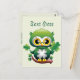 Cute Little St Patrick's Day Owl Cartoon Character standing on a branch and holding a Shamrock Clover. Original Vector Art Copyright BluedarkArt TheChameleonArt