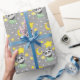 Cute baby panda med en ljus gult måne och stjärnor på en polka punktbakgrund.