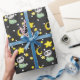 Cute baby panda med en ljus gult måne och stjärnor på en polka punktbakgrund.