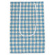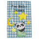 Cute baby panda med en ljus gult måne och stjärnor på en blå gingham mönster. Text kan redigeras.