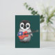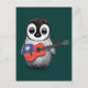 Baby Penguin spelar taiwanesisk Flagga Guitar Teal Vykort