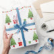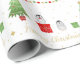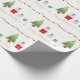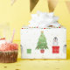 En papper julomslutning med baby-pingviner, Julgran, inslagna presenter och stjärnor. Natalie Kinnear Designs