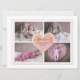 Modern 5-fotokollage-födelseanmälan för flicka eller pojke. Använda bara den här mallen om du vill lägga till dina egna anpassningsbar på kortets framsida och baksida, och anpassa dig med baby namn och födelsestatus i trendiget elegant, skripttypografi i mitten i det lilla rosa hjärtat.
