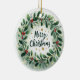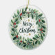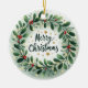 Ett vackert detaljerat exempel på utandning av helgdag som består av olika grönt löv och grenar, försedd med ljusröda bär. Utandningsegenskaperna mistletoe, holly och evergreen foliage med subtila ljusaccenter, ge det en festlig känsla och elegant känsla. Utformningen är delikat men levande, perfekt för jultemade dekorationer eller säsong-grafik. Byt foto och namn till ditt älskade baby och ha en festlig träd-prydnadsgåva!