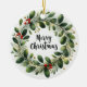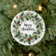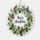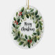 Ett vackert detaljerat exempel på utandning av helgdag som består av olika grönt löv och grenar, försedd med ljusröda bär. Utandningsegenskaperna mistletoe, holly och evergreen foliage med subtila ljusaccenter, ge det en festlig känsla och elegant känsla. Utformningen är delikat men levande, perfekt för jultemade dekorationer eller säsong-grafik. Byt foto och namn till ditt älskade baby och ha en festlig träd-prydnadsgåva!