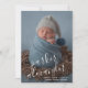 Elegant söt tillkännagivande för födelse har ditt favoritfoto i fullt-utfall, med baby namn i ett vitt skript med lutande färg och födelsestativet på framsidan med 3 foton och namnen på baksidan. MATCHING-objekt i vår butik.