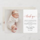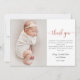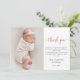 Tack för ditt kort - Modern Elegant Ro-skript, nyfödd Photo Flicka. Har en vacker "tack"-text i ett kursivt, handskrivet kalligrafi som byter typsnitt mot svan i faux-folie från ro guld (eller folie för rosa) och ett personligt meddelande. Och bakom all text, lätt att anpassa med foto och information från baby.