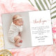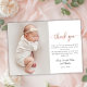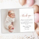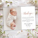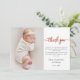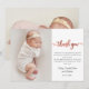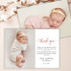 Tack för ditt kort - Modern Elegant Ro-skript, nyfödd Photo Flicka. Har en vacker "tack"-text i ett kursivt, handskrivet kalligrafi som byter typsnitt mot svan i faux-folie från ro guld (eller folie för rosa) och ett personligt meddelande. Och bakom all text, lätt att anpassa med foto och information från baby.