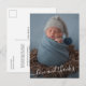 Elegant söt tillkännagivande för födelse har tack vare dig och ditt favoritfoto på framsidan och ditt budskap, baby namn, födelsestatus och namn i chic med brev på baksidan som vykort!