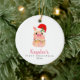 Baby Pig First jul Ceramic Ornament - Den ädla personlig julafton prydnadsmallen har en vidkomlig vattenfärgad gris och gris bär en tomhatt och en trassla i helgdag ljus. Med textrutorna kan du enkelt anpassa ett baby namn i ett handskrivet kalligrafiskt skrivteckensnitt med fet rosa och födelseår i ett enkelt, minimalistiskt sans serif. Båda sidor av den här personlighetsdugliga dekorationen träd är identiska.