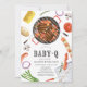 Den här söta "Baby-Q"-inbjudan till BBQ/barbeque-babyduschen har ett bottengrepp med BBQ mat, t.ex. hamburgersteaks, svampar, en skeva, korv, bacon, maj, lök, tomat, potatis och sparris. Baksidan har en vit bakgrund med röd gingham/buffalo check/plaid mönster. Anpassa den efter dina behov. Du hittar matchande produkter i min butik.