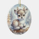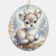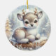 Baby Reindeer on Snowy Log Julgransprydnad Keramik