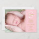 Modern kartläggning av foto i flicka för att presentera ditt vackra nyfödda flicka. På framsidan finns ett foto från baby, ett inledande mongram och ett guld födelsetal och ett meddelande på rosa bakgrund. Baksidan har ytterligare tre foton från baby. Designad av Thisisnotme©