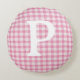 Baby Rosa Rutigt Mönster Initial Anpassad Rund Kudde