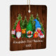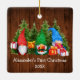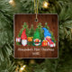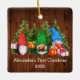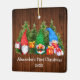 Baby Första jul Watercolor Gnomes med Julklapp och Gräs Träd Ornament. Rustic Land Wood. Lägg till Namn.