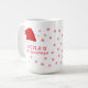 Baby`s First Christmas Santa Hat Snowflake Coffee Mug. Cute baby first Christmas design with a Santa hat, red snowflakes and a baby name - personalize with your baby`s name.